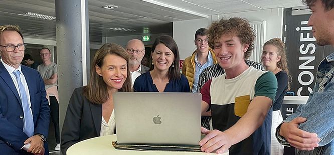 La présidente de Région Christelle Morançais en a profité pour aller à la rencontre des étudiants de Polytech Angers, le 5 octobre 2023, pour échanger sur la vie étudiante et les différents projets en cours, mais aussi sur les associations, les formations, et leur avenir professionnel. L’occasion de découvrir et présenter l’esquisse architecturale retenue pour la réalisation de l’opération de restructuration et d’extension de Polytech Angers. « Nous investissons pour doter les territoires de notre région de campus attractifs, offrant une qualité de travail optimale, et ce projet de réaménagement témoigne de ce que nous voulons offrir aux jeunes : un horizon pour faire face aux défis de demain, un horizon pour trouver un emploi dans notre belle région. »