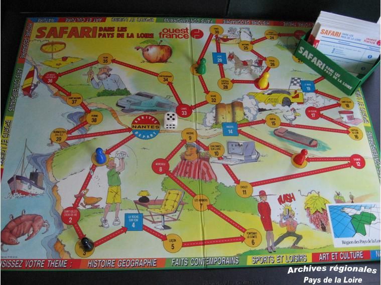 Parmi les archives conservées dans nos collections, et notamment parmi les intéressants documents en trois dimensions…, figurent en effet des jeux de société produits par la collectivité pour faire connaître les Pays de la Loire.