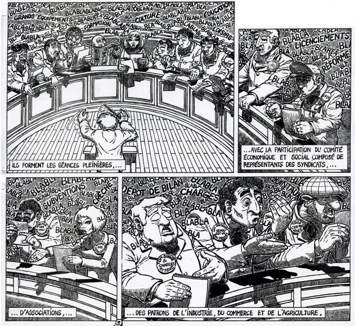 Voici quelques extraits des planches proposées à la Région à l’époque par plusieurs candidats (D. Wagner – l’un des lauréats - pour les 2 premières, O. Cotte et Y. Perottin), parfois non dénuées d’humour…