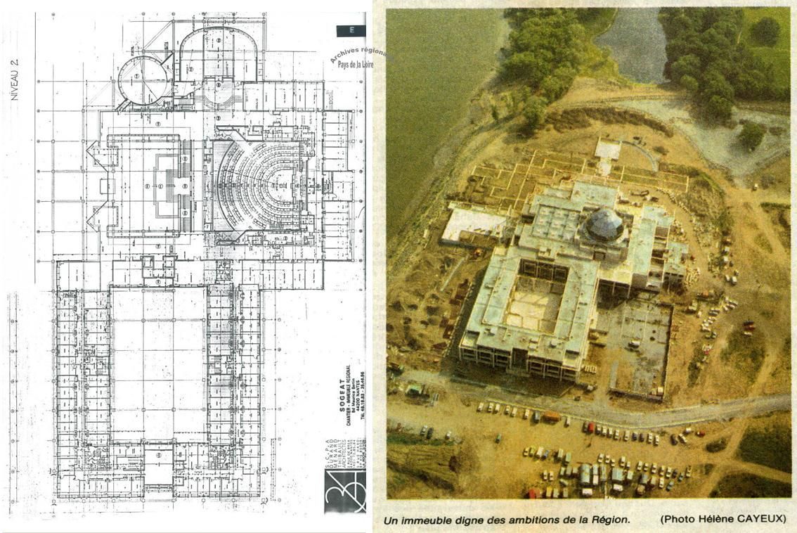 Il y a exactement 30 ans, dans sa séance du 2 février 1982, le conseil régional votait l’acquisition d’un terrain d’une superficie de 12 968 m2 compris dans le périmètre de la Zone d’Aménagement concerté de Beaulieu pour y construire un immeuble régional. Il y a 25 ans, était inauguré l’hôtel de Région en présence d’Olivier Guichard et de Jacques Chaban-Delmas, alors président de l’Assemblée Nationale. Le versement récent d’un ensemble de photographies prises au cours du chantier est l’occasion de rappeler quelques principes constructifs mis en œuvre lors de son élaboration.