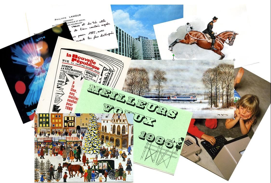 En ce début d'année, vous souscrivez peut-être à la tradition des cartes de vœux auprès de vos cercles de relations personnelles et professionnelles. Electronique ou sur support papier, la carte de vœux est l'occasion de maintenir les contacts avec ses relations ; elle peut être aussi pour un organisme un support d'expression de son identité. En voici quelques exemples variés extraits des archives régionales...