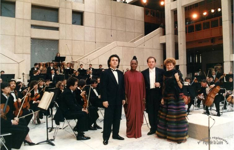 A gauche de l’animatrice Eve Ruggieri au 1er plan : la cantatrice Shirley Verrett récemment décédée, Marc Soustrot (directeur musical de l’OPPL de 1974 à 1994).