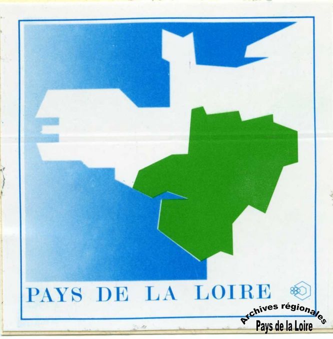 Le premier logo est en effet créé dès 1974, l’année de la mise en place des assemblées régionales (Conseil régional et Comité économique et social régional). Ci-dessus, en quatrième de couverture – de couleur légèrement bleutée - de la revue « Connaissance des Pays de la Loire » de septembre 1974 (éditée par la Préfecture de Région).