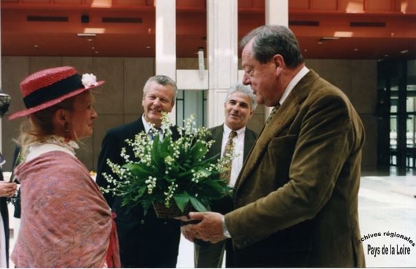 Enfin, n’oublions pas le caractère festif de la tradition du muguet du 1er mai : voici des photographies d’une « opération muguet » organisée à l’Hôtel de Région en présence de conseillers régionaux et du président du Conseil régional Olivier Guichard au mois de mai 1995 (nous n’avons malheureusement aucune information sur les personnes en costumes...).