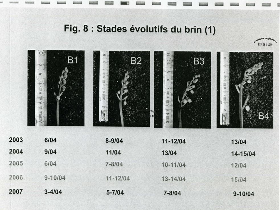 Cela nous permet de découvrir des documents à caractère technique ou scientifiques, tels les extraits suivants des résultats de ce type d’expérimentation - ici l’étude des stades de croissance des brins de muguet entre 2003 et 2007 :
