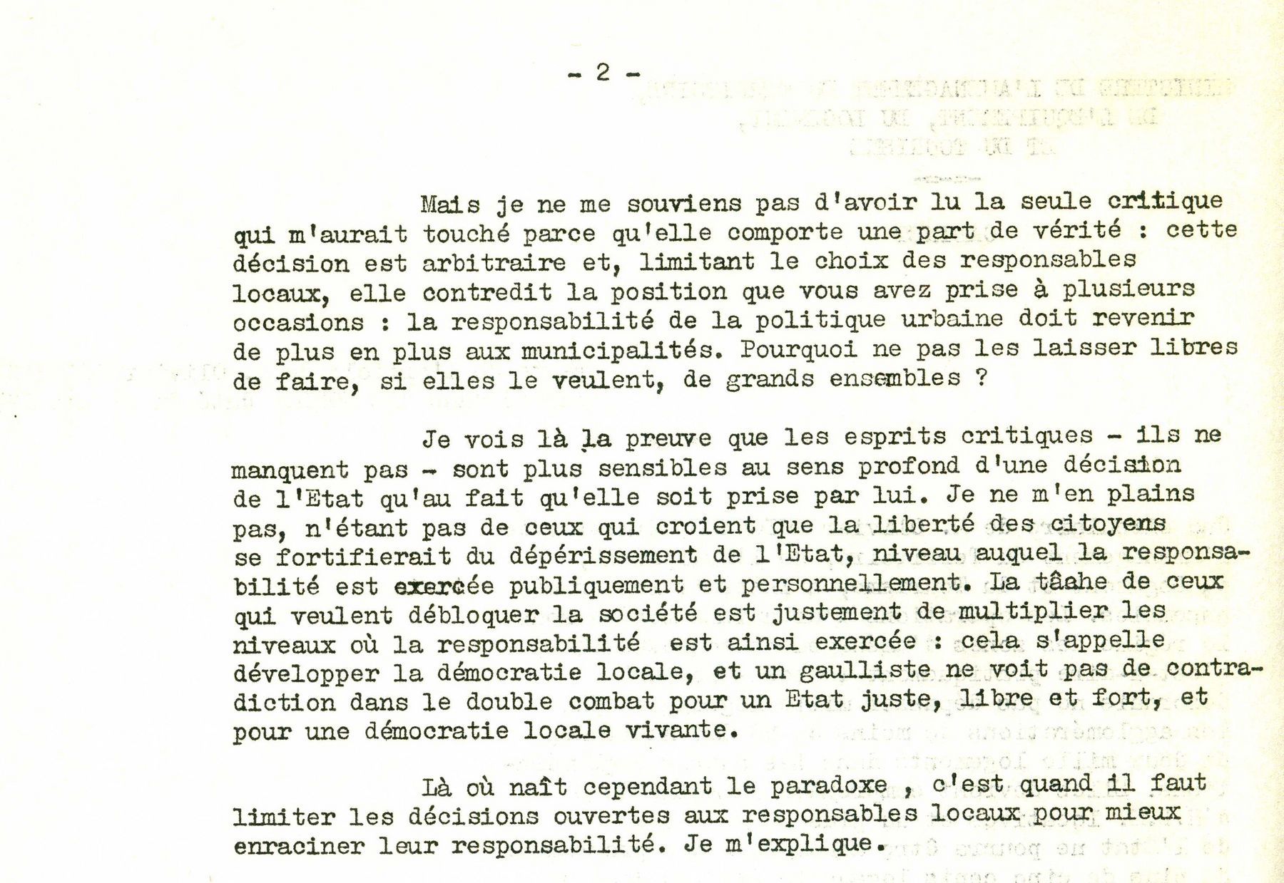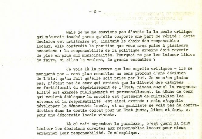 Parmi ces archives, le texte dactylographié « Pas de ville sans cité », reprenant un article paru dans Le Monde, a pour buts d’expliciter les intentions de la circulaire et de répondre aux critiques reçues.