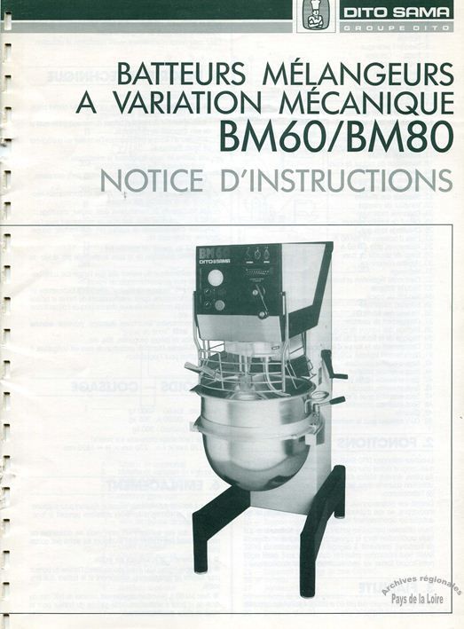 - 43W 703 : notice d’utilisation de batteurs mélangeurs, dossier d’aménagement du Lycée Bellevue au Mans [1991-1994] (Archives Direction Education et enseignement supérieur).