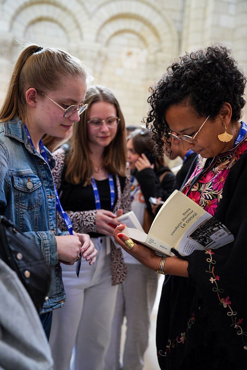 Ce mardi 20 mai, à l’Abbaye royale de Fontevraud, deux auteurs ont été primés pour leurs ouvrages : Beata Umubyeyi Mairesse dans la catégorie Roman, et Matthias Arégui dans la catégorie BD. Les prix leur ont été remis en présence d’Isabelle Leroy, vice-présidente de la Région des Pays de la Loire déléguée à la culture, et des 650 élèves des 16 établissements qui ont participé à cette action éducative cette année.