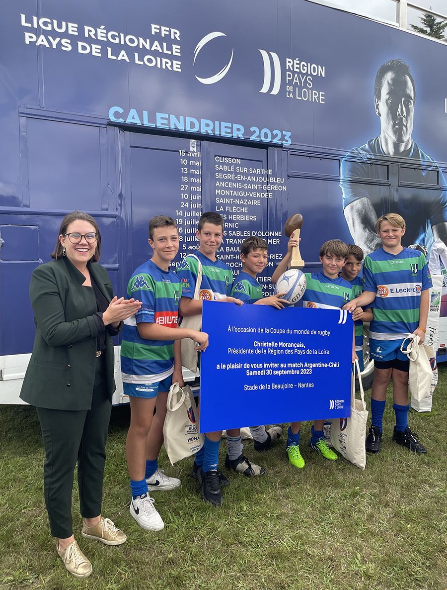 Le 15 avril 2023, Clisson (44) a accueilli le grand départ du programme d’actions et d’animations de la Ligue Pays de la Loire dans le cadre de la coupe du monde 2023. Baptisée Rugby au cœur des terroirs et du territoire ligérien, l’opération propose une série d’animations grand public qui s’articulent autour du Bus du rugby : ce bus est composé d’une partie basse de type vestiaire avec des informations sur la Coupe du monde de rugby 2023 et plusieurs animations. La partie haute du bus faisant office d’espace VIP entre les différentes parties prenantes de l’événement : institutionnel (Région des Pays de la Loire, autres collectivités territoriales), économique (partenaires de l’événement) et du rugby : clubs de rugby, comité départemental de rugby et la Ligue régionale Pays de Loire rugby.